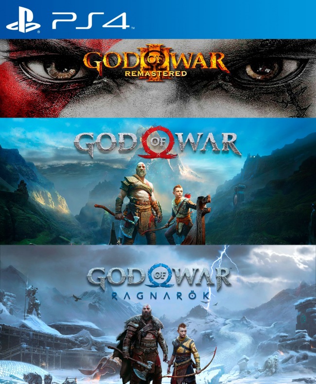 El pack incluye: - GOD OF WAR III REMASTERED PS4 - GOD OF WAR PS4 - GOD OF WAR RAGNAROK PS4 Pesos de los juegos : 183 GB Requerido en consola : 200 GB Instalación : 1 consola